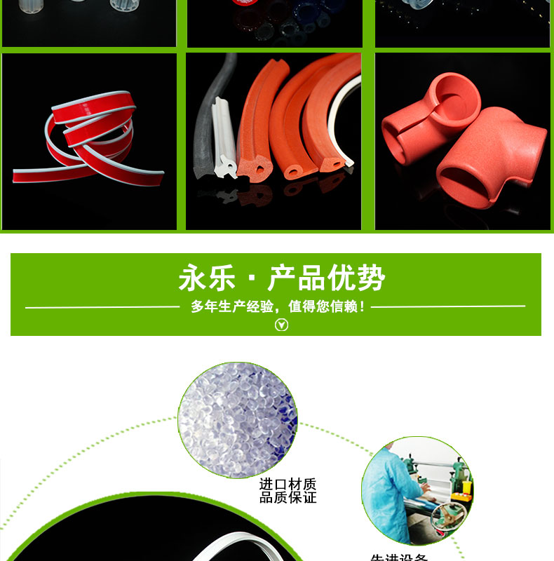 雙色硅橡膠制品廠家名稱 | 永樂橡塑 | 產(chǎn)品材質(zhì) | 硅橡膠 | 產(chǎn)品耐溫 | -50~220 |