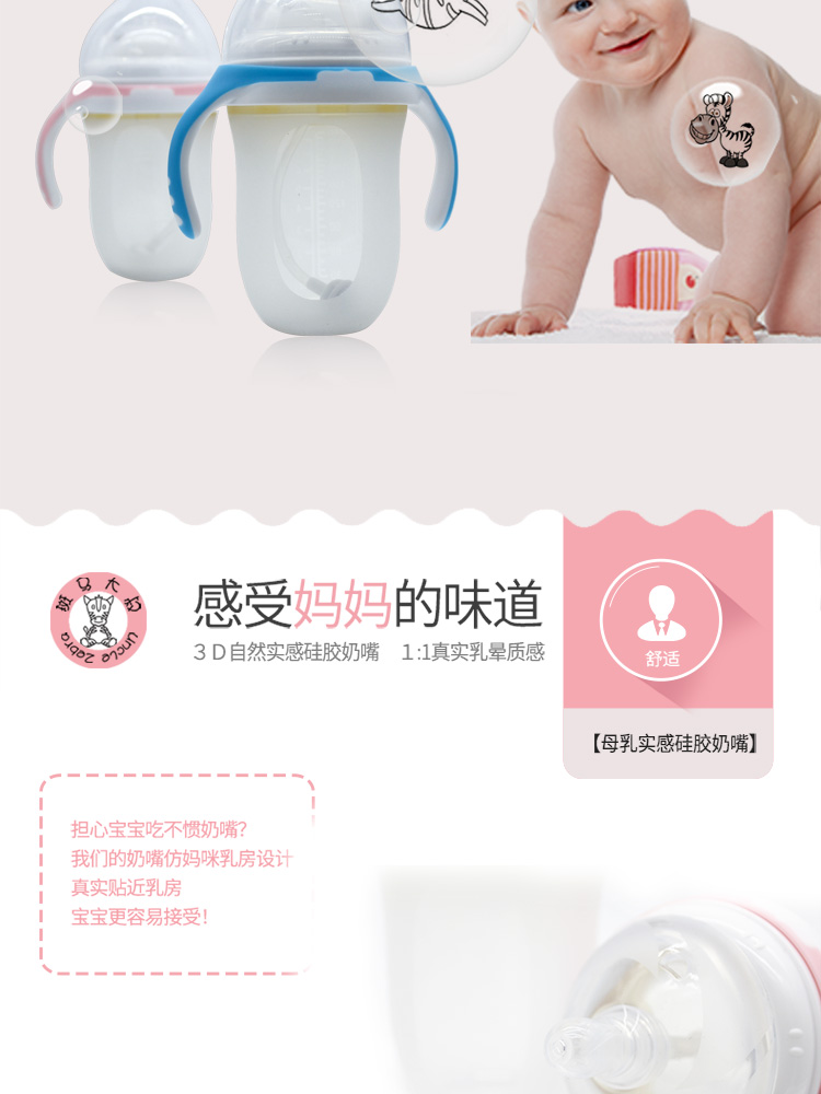 OEM/ODM定制加工產(chǎn)品名稱:廣口硅膠奶瓶