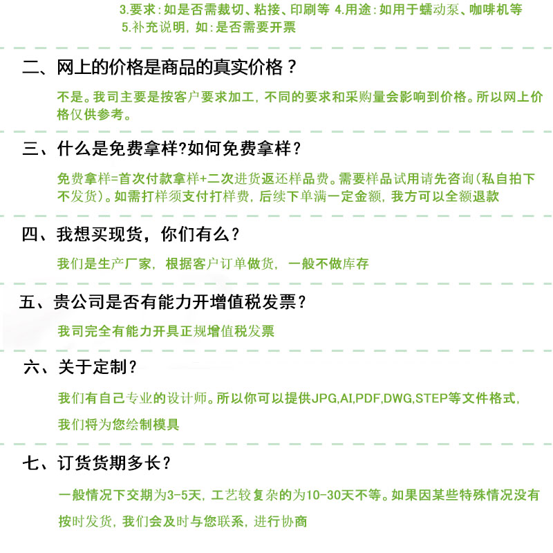 產(chǎn)品硬度 | 打樣時間 | 7天內(nèi) | 產(chǎn)品樣板 | 現(xiàn)樣免費 | |