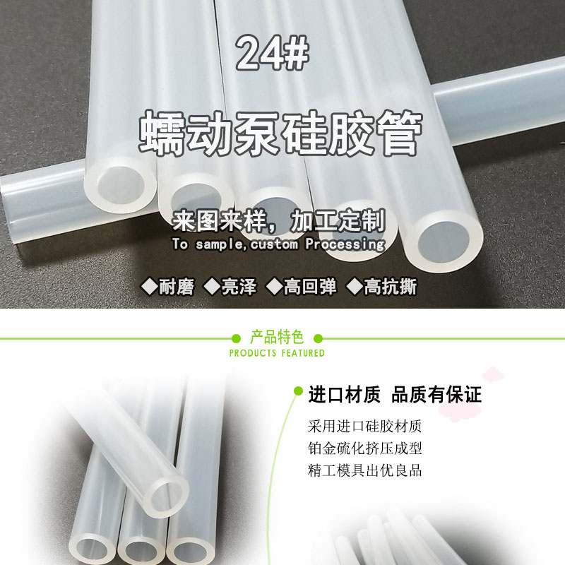 24#蠕動泵硅膠管:采用進(jìn)口硅膠原材料,壁厚均勻析出物少,化學(xué)性穩(wěn)定,可耐弱酸弱堿、耐化學(xué)試劑、藥液酒精等,可通過細(xì)胞毒性測試標(biāo)準(zhǔn);常規(guī)硬度60度(邵氏硬度值20-80度)。常規(guī)PE袋+紙箱包裝,特殊要求可按客戶標(biāo)準(zhǔn);產(chǎn)品符合SGS、FDA、LFGB、生物相溶性等;用于灌裝機(jī)、蠕動泵專用、醫(yī)療醫(yī)用器械、輸液泵等。
