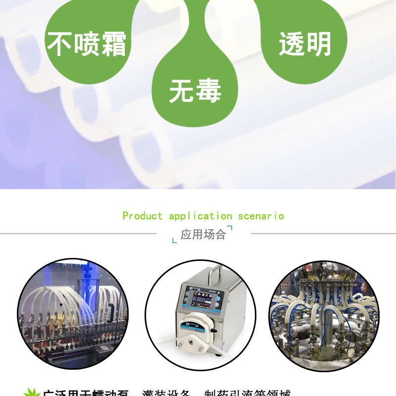 尿動儀蠕動泵硅膠管:采用進(jìn)口硅膠材料,立式擠出成型,內(nèi)壁平滑,壁厚均勻;常規(guī)60度(邵氏硬度值20-80度);耐溫范圍廣(-50~+280℃),可以適應(yīng)高、低溫設(shè)備需求,并耐老化。常規(guī)PE袋+紙箱包裝,特殊要求可按客戶標(biāo)準(zhǔn);產(chǎn)品符合SGS、FDA、LFGB、生物相溶性等;用于灌裝機(jī)、蠕動泵專用、醫(yī)療醫(yī)用器械、輸液泵等。