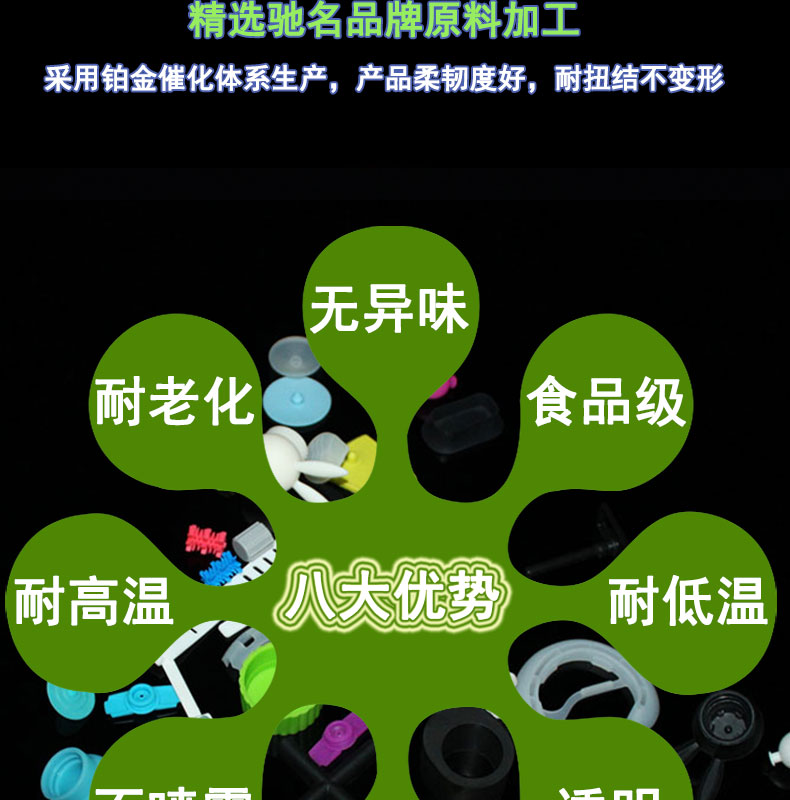 醫(yī)療模壓硅膠件采用進(jìn)口硅膠材料,模壓成型,內(nèi)壁平滑,壁厚均勻;常規(guī)60度(邵氏硬度值20-80度);耐溫范圍廣(-50~+280℃),可以適應(yīng)高、低溫設(shè)備需求,并耐老化。常規(guī)PE袋+紙箱包裝,特殊要求可按客戶標(biāo)準(zhǔn);產(chǎn)品符合SGS、FDA、LFGB、生物相溶性等;用于灌裝機(jī)、蠕動(dòng)泵專用、醫(yī)療醫(yī)用器械、輸液泵等。