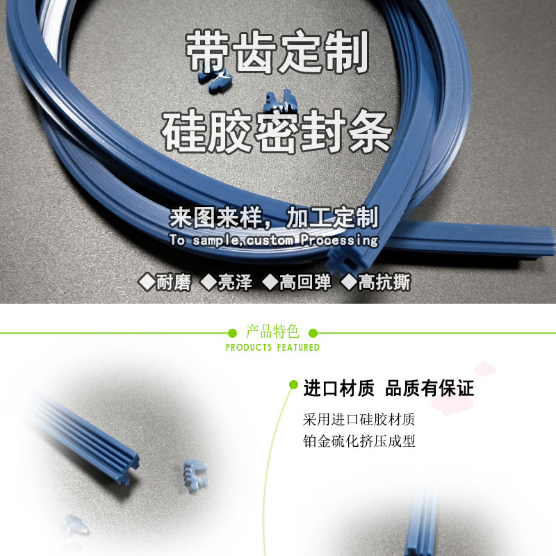 擠出硅橡膠制品產(chǎn)品名稱:帶齒定制硅膠密封條