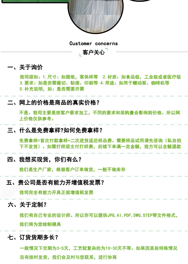 產(chǎn)品硬度 | 20-80A | 打樣時間 | 7天內(nèi) | 產(chǎn)品樣板 | 現(xiàn)樣免費(fèi) |
